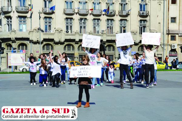 Traficul de persoane este tot mai intens, spun reprezentanţii autorităţilor locale, care au dorit ca vineri să tragă un semnal de alarmă în centrul Craiovei, unde au organizat un flash-mob cu tema „Nu vreau să fiu o marfă“. Trecătorii au primit astfel pliante şi au fost informaţi verbal despre cum pot deveni victime. Acţiunea a fost organizată în principal de World Vision România – Biroul Zonal Dolj, alături de câţiva parteneri: Agenţia Naţională împotriva Traficului de Persoane- Centrul Regional Craiova şi Palatul Copiilor Craiova.