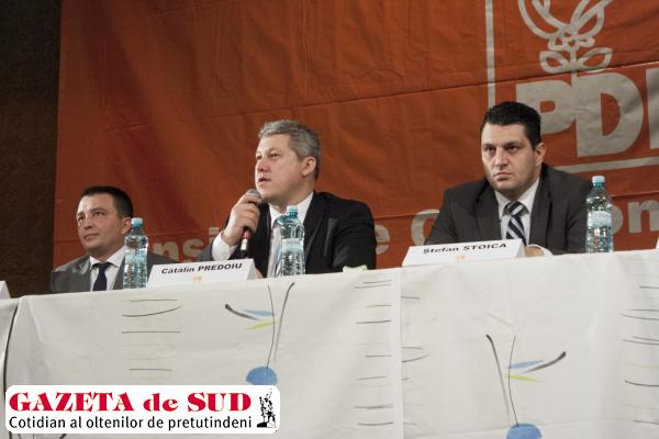 Invitatul de onoare, prim-vicepreședintele PDL Cătălin Predoiu, a declarat că-l susține pe Mărinică Dincă și împreună speră să crească imaginea partidului: „Când eram mai mic și jucam fotbal il aveam ca idol pe Ilie Balaci, la Facultate îl citeam pe Titulescu, mai tâziu am început să am și prieteni în Craiova, unul dintre aceștia este și Mărinică Dincă pe care-l susțin în aceste alegeri. Azi dumneavoastră deveniți o parte dintre prietenii mei. România are nevoie mai mult decât oricând de construcție, ceea ce facem noi azi este nu numai construcția partidului ci construcția României de mâine. Trebuie să fim încrezători în drumul nostru, să intensificăm relațiile dintre organizații. Eu vă propun să nu ne dăm bătuți, să nu ne oprim la un scor de 19% cât are partidul nostru în acest moment în sondaje, putem să ajungem până la cel puțin 25% cu multă, multă muncă. PDL va găsi forța pentru a câștiga viitoarele alegeri europarlamentare, care sunt cruciale în lupta noastră.”