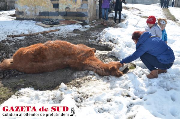 Un cal bolnav a fost abandonat de propriul stăpân şi lăsat mai multe zile să se chinuiască. Animalul nu se mai putea ţine pe picioare, fapt pentru care stăpânul l-a lăsat să se zbată din cauza durerilor în afara gospodăriei, în faţa unui grajd ce stă să cadă. Într-o baltă cu nămol, înconjurat de zăpadă, în cartierul Izvorul Rece, de la marginea Craiovei. Despre acest caz, redactorii GdS au fost anunţaţi de o reprezentantă a Asociaţiei pentru drepturile animalelor „Dă-mi o şansă!“.