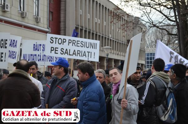 Peste 200 de sindicaşti din cadrul Complexului Energetic Oltenia(CEO) au început la 16.30 o acţiune de pichetare a sediului Diviziei Miniere, din Târgu Jiu. Protestul este organizat de Federaţia Naţională Mine Energie (FNME). Sindicaliştii poartă pancarte pe care au fost scrise mesaje împotriva administraţiei acuzată că face presiuni asupra angajaţilor. De asemenea, managerii CEO sunt acuzaţi de încălcarea contractului colectiv de muncă, FNME dorind începerea imediată a negocierilor cu administraţia. Pichetarea se va încheia la ora 18.00 şi va fi organizată şi în următoarele cinci zile lucrătoare, potrivit aprobării primite de la Primăria Târgu Jiu.