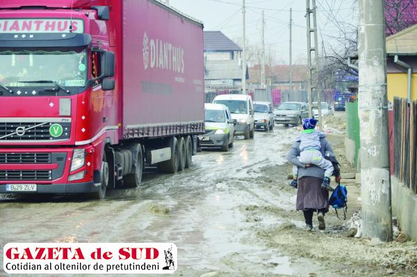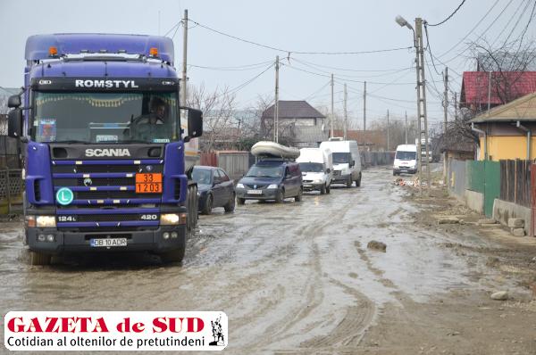 \nŞoferii care circulă dinspre Piteşti către Craiova trebuie să se înarmeze cu nervi de oţel pentru a putea traversa Slatina, unde circulaţia a fost deviată pe strada Grădişte cât timp se lucrează la reţeaua de canalizare a oraşului. Grădişte este o stradă numai cu numele, pentru că, în realitate, este o uliţă de pământ acoperit cu balast, plină de şanţuri, hârtoape şi nămol, dar şi de hoţi care atacă tirurile.
