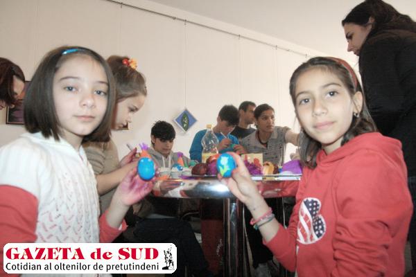 Pe tot parcursul atelierului de creaţie, cei prezenţi au învăţat de la artişti plastici diferite tehnici de încondeiat ouă, dar şi ce materiale pot folosi. „Avem în sală copii care învaţă tehnica vopsirii de Paşte a ouălor. Sunt foarte entuziasmaţi. Printre ei sunt prezenţi şi copii care au avut o şansă mai mică la bucurii, dar care în aceste momente sunt plini de fericire şi mulţumiţi că li s-a dat şi lor această oportunitate să împărtăşească bucuria de a încondeia ouă”, a adăugat Mariana Montegaza, artist plastic.