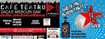 Radio Sud vă invită în această seară, de la ora 21.30, la un concert live al trupei „The Players”, care va avea loc în „Cafe Teatru Play”. Concertul face parte din cadrul campaniei „Radio Sud ON STAGE”, una de susţinere a muzicii bune din Craiova. Solista trupei „The Players”, Ela , va intra în direct la Radio Sud, în jurul orei 14.00, în cadrul emisiunii „Siesta”.
