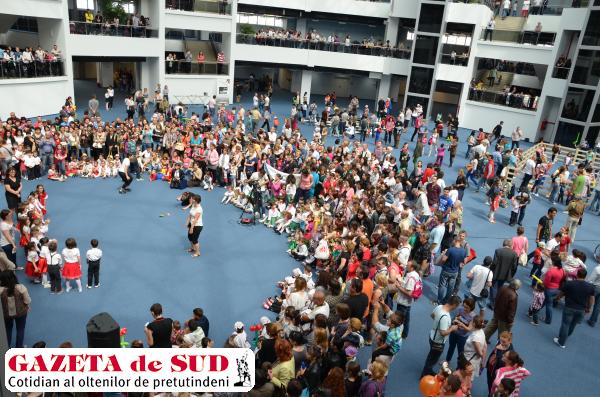 Centrul Multifuncțional din Craiova a prins viață ieri. Sute de copii de toate vârstele au participat la turneele de minibaschet, minihandbal, dar și ale cluburilor BC „Ionuț Drăgușin“ (baschet), HCM Craiova (handbal), CS Universitatea Craiova (fotbal). Preșcolarii de la grădinițele din Craiova, dar și din județ au susţinut numeroase activități și concursuri de desen pe asfalt, parade de costume, festivaluri de dansuri, jocuri și cântece, punerea în scenă a unor tradiții românești autentice. Nu știai la care grup de copii să privești mai întâi, toți erau minunați, extrem de frumoși, fie îmbrăcați în costume populare, fie în costume de prințese sau balerine. La etajele superioare ale Centrului Multifuncțional, elevii extrem de talentați ai Liceului de Arte „Marin Sorescu“ au demonstrat încă o dată talentul pe care îl au, susținând un concert de excepție, alături de dirijorul lor. În ținute elegante, cu un respect aparte pentru iubitorii de muzică, elevii au oferit un recital impresionant. „Vom interpreta melodii cu influențe tradiționale, madrigale englezești, muzică de film. Interpretăm cu mare drag, în spatele acestor recitaluri sunt luni de pregătiri. Pentru cel de azi, de exemplu, ne pregătim de la începutul acestui an, însă suntem perfecționiști și vrem să fim cei mai buni. Motoul meu în viață este «Muncește ca un sclav, trăiește ca un rege!», iar aceste vorbe aș vrea să îi ghideze pe toți copiii“, a spus Emanuel Strinu, elev la Liceul de Arte „Marin Sorescu“. Recitalul a fost oferit de un grup de adolescenți care au obţinut mai multe premii la olimpiadele și concursurile naționale și internaționale de muzică.