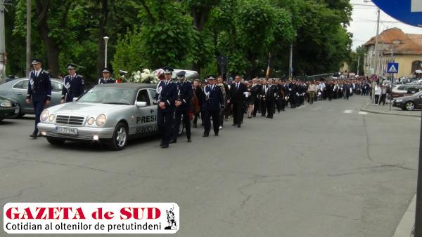 Plutonul de onor şi garda port-drapel ale Inspectoratului de Jandarmi al Judeţului Dolj au executat trei salve cu cartuşe de manevră după înmormântarea fostului comisar-şef Liviu Ţiulescu.