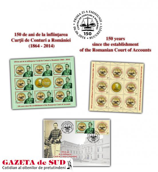 Începând de vineri, 6 iunie 2014, emisiunea de mărci poştale „150 de ani de la înfiinţarea Curţii de Conturi a României” va putea fi achiziţionată de la toate magazinele Romfilatelia din Bucureşti şi din ţară.