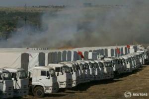 Aproape 300 de camioane din Rusia ce conțin 1.800 de tone de ajutor umanitar, potrivit Moscovei, staționează de joi la circa treizeci de kilometri de postul de frontieră Donețk, în localitatea rusă Kamensk-Șahtinski.