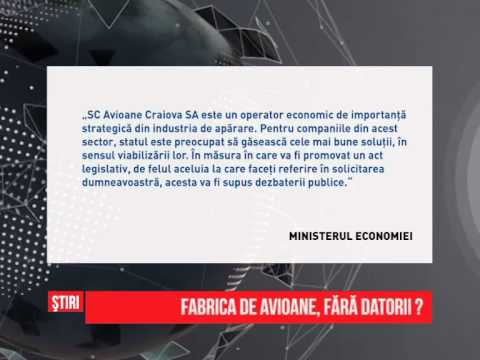 Statul vrea să şteargă datoriile Fabricii de Avioane din Craiova transformându-le în acţiuni. Sunt debite istorice de peste 20 de milioane de Euro, care gonesc din start orice posibil partener. Acestea nu pot fi, însă sterse pur și simplu pentru că statul nu deține toate acţiunile fabricii.