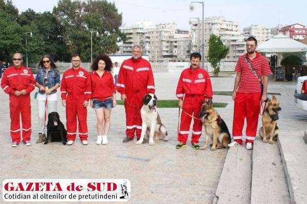 La prezentarea făcută de pompierii doljeni a participat și o grupă a Centrului de Educare Canină Craiova, partener al ISU Dolj. „Ceea ce vedem astăzi este grupa mică, care este la prima prezentare de acest gen. Este o grupă destul de interesantă, cu exemplare de Ciobănesc German (Cenzo), un Saint-Bernard frumos (Steluță), încă un Ciobănesc German (Sasha) și un Labrador (Neky), care face parte din lotul care a câștigat titlul de vicecampion mondial al câinilor de căutare și salvare ce a avut loc în Italia în acest an. O să prezentăm exerciții de urmă, mai exact căutarea unor persoane dispărute și căutarea pe suprafață“, a precizat, pentru GdS, preşedintele Centrului Naţional de Educare Canină, Liviu Ionescu.