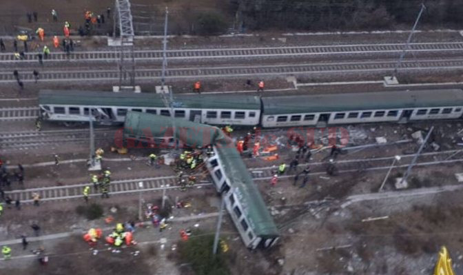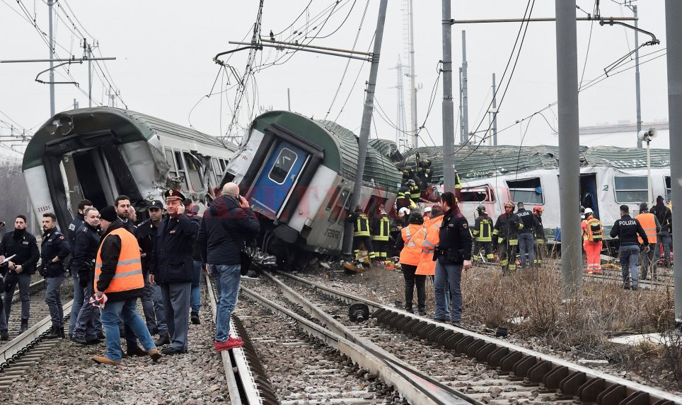 Accident feroviar lângă Milano. Cel puţin doi morţi şi 100 de răniţi