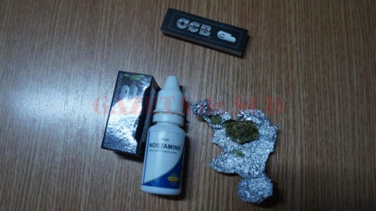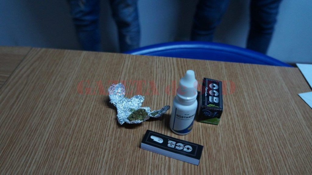 Jandarmii vâlceni aflându-se în Piaţa Centrală din municipiu au observat într-o zonă retrasă, doi tineri ce aveau un comportament dubios. În urma legitimării şi al controlului corporal preventiv executat, jandarmii au găsit asupra lui L.D. în vârstă de 20 ani şi V.C.A de 21 ani, un pachet de foiţe inscripţionat „O.C.B“, un recipient din plastic de 10 ml, de culoare albă, inscripţionat ,,Nostamine” ce conţinea o substanţă necunoscută şi o bucată din aluminiu, iar în interiorul acesteia se aflau resturi vegetale de culoare brun-verzui, având un miros înţepător. În urma unei discuţii purtate cu cei doi tineri, jandarmii au descoperit că aceştia se aflau în acel loc retras pentru a fuma o ţigară cu substanţe interzise.
