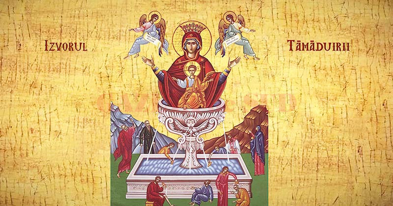 Sărbătoarea îşi trage denumirea de la o minune săvârşită de Maica Domnului prin apa unui izvor cu putere tămăduitoare, descoperit, prin mijlocirea Fecioarei Maria, de Leon I (457 – 474), cu puţin timp înainte de a ajunge împărat.