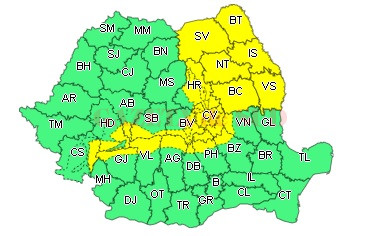 Administrația Națională de Meteorologie a emis o atenţionare de Cod Galben de intensificări ale vântului, ninsori viscolite și spulberate, de astăzi, de la ora 22.00 până mâine, la ora 18.00. În zona Carpaților Meridionali și Orientali local și temporar va continua să ningă slab, iar vântul va avea intensificări, îndeosebi la peste 1500 m altitudine, cu viteze, în general, de 70 – 80 km/h, viscolind ninsoarea și spulberând zăpada. La peste 1800 m, în special în Carpații Meridionali în noaptea de miercuri spre joi (24/25 octombrie), vor fi rafale mai mari de 90…100 km/h și va fi viscol puternic.