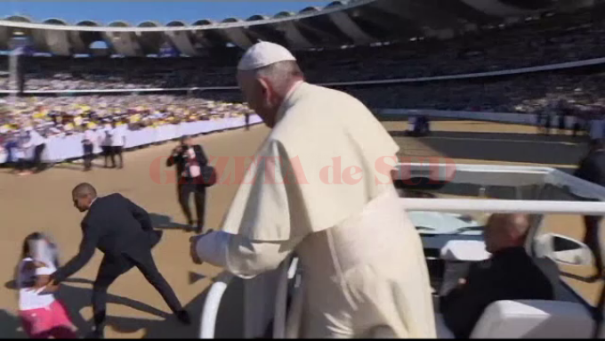 La sosirea pe stadionul din Abu Dhabi, unde a oficiat o slujbă, Papa Francisc a avut parte de o surpriză. O fetiță s-a strecurat pe sub bariera de securitate şi a fugit direct spre papamobil, pentru a-i da pontifului o foaie de hârtie. O a doua copilă, care a fugit din mulţime, a fost, de asemenea, binecuvântată de sfântul părinte.