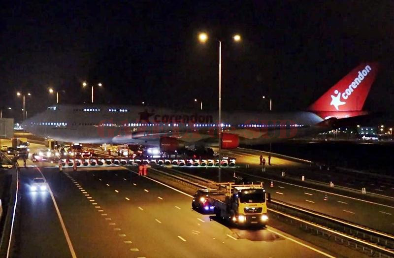 Odată traversată autostrada, avionul a avut nevoie de 57 de manevre pentru a fi parcat în locul final din apropierea complexului hotelier.