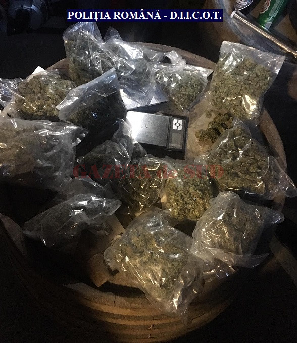 Anchetatorii susţin că, în urma unor percheziţii domiciliare, au descoperit peste trei kilograme de canabis, droguri care au fost trimise în ţară din Spania printr-o firmă de curierat şi care ar fi trebuit să ajungă la consumatori din municipiul Craiova. „Poliţiştii din cadrul Brigăzii de Combatere a Criminalităţii Organizate din Craiova, sub coordonarea procurorilor DIICOT, au descoperit și indisponibilizat 3,4 kilograme de cannabis şi 80 de grame de rezină de cannabis (haşiş). Drogurile ar fi fost destinate pieţei din Craiova, urmând a fi valorificate către diverşi consumatori, contra unor sume cuprinse între 70 şi 100 de lei/gram”, au precizat oamenii legii.