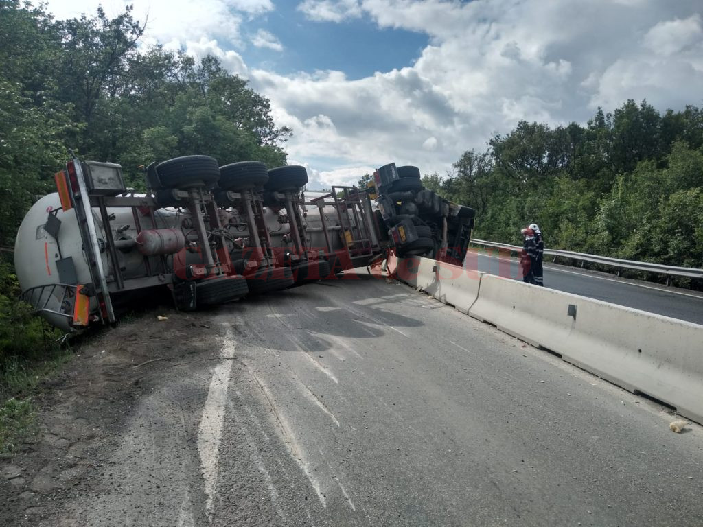 Update: Autocisternă răsturnată în zona pădurii Saru