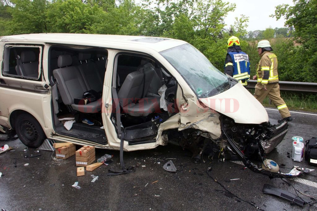 (GALERIE FOTO) Un mort şi şapte răniţi, după ce un un microbuz românesc a intrat în alte două maşini în Germania