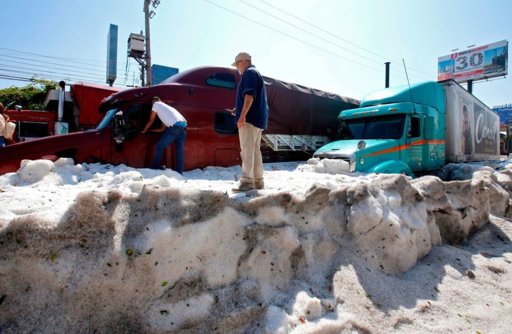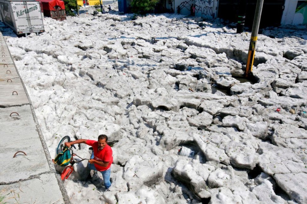 Șase suburbii din orașul mexican Guadalajara au fost acoperite cu un strat gros de gheață după o furtună puternică, în care a plouat cu grindină, potrivit www.bbc.com.