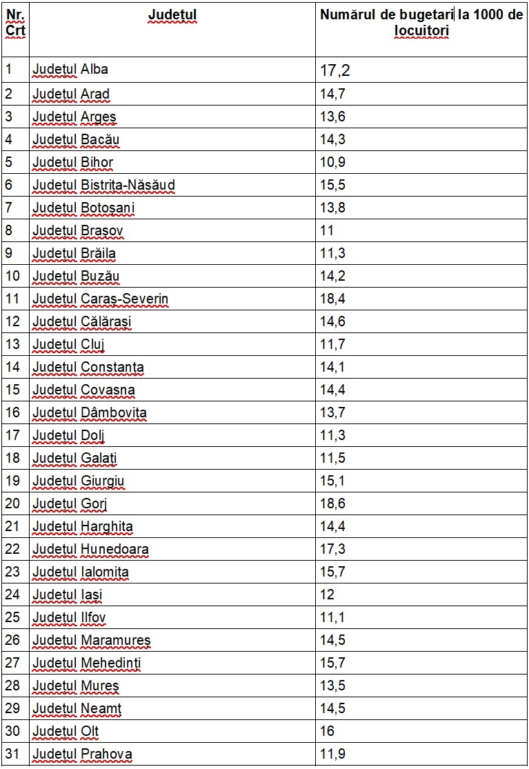 Știri de ultima orăActualitateTopul numărului de bugetari din administrația locală la mia de locuitori
