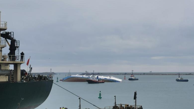 O navă cu peste 14.000 de oi s-a răsturnat, duminică, în Portul Midia, informează digi24.ro.