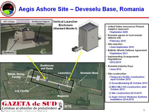 Scutul antirachetă din localitatea Deveselu, din județul Olt, este activ din decembrie 2015.