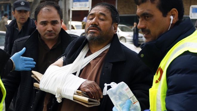 Focurile s-au tras dintr-o clădire din apropierea ceremoniei, care este în construcție, potrivit poliției. Ceremonia care marchează 25 de ani de la moartea liderului etnic Hazara, Abdul Ali Mazari, ucis de talibani, a fost transmisă în direct. Oamenii au fost văzuți fugind în timp ce sunetul focurilor de armă sunau.