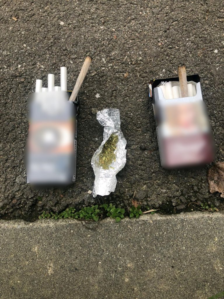 La efectuarea controlului corporal, jandarmii au găsit asupra tinerilor 2 pachete de ţigări normale, iar în fiecare pachet se afla câte o ţigară confecţionată artizanal din resturi vegetale de culoare maronie şi miros înţepător. De asemenea în  rucsacul unuia dintre tineri jandarmii au mai găsit o foiţă de staniol care conţinea acelaşi tip de substanţe.