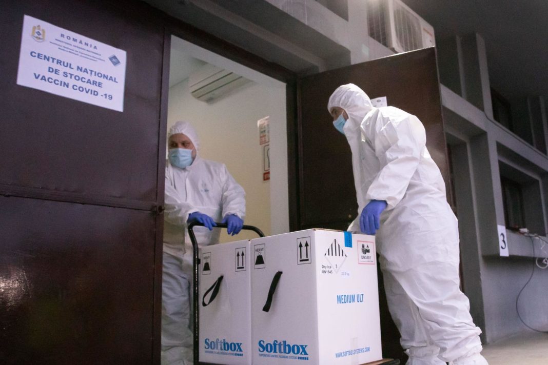 Transportul către centrele de stocare este asigurat de firma producătoare, inclusiv pe cale terestră. Vaccinurile sunt transportate în condiţii optime de siguranţă, în containere speciale, cu gheaţă carbonică şi folie etanşă, a precizat CNCAV.