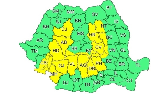Codul este valabil luni, de la ora 12, până la ora 22. În acest interval, local, în zona de munte, vor fi perioade cu instabilitate atmosferică accentuată care se va manifesta prin averse torențiale, frecvente descărcării electrice, intensificări ale vântului și pe alocuri vijelii și grindină.