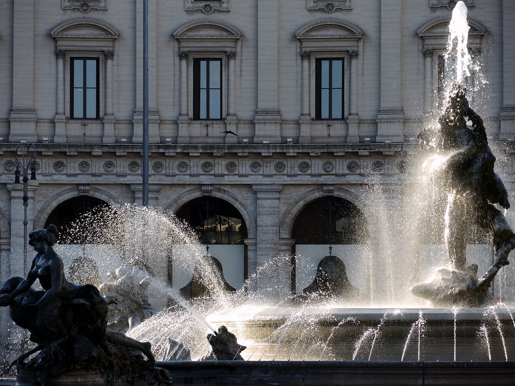 Fontana delle Naiadi a fost inaugurată de Papa Pius al IX-lea la în 1870 și câțiva ani mai târziu a fost refăcută de un arhitect celebru. Fântâna include și patru statui din bronz ale sculptorului Mario Rutelli.