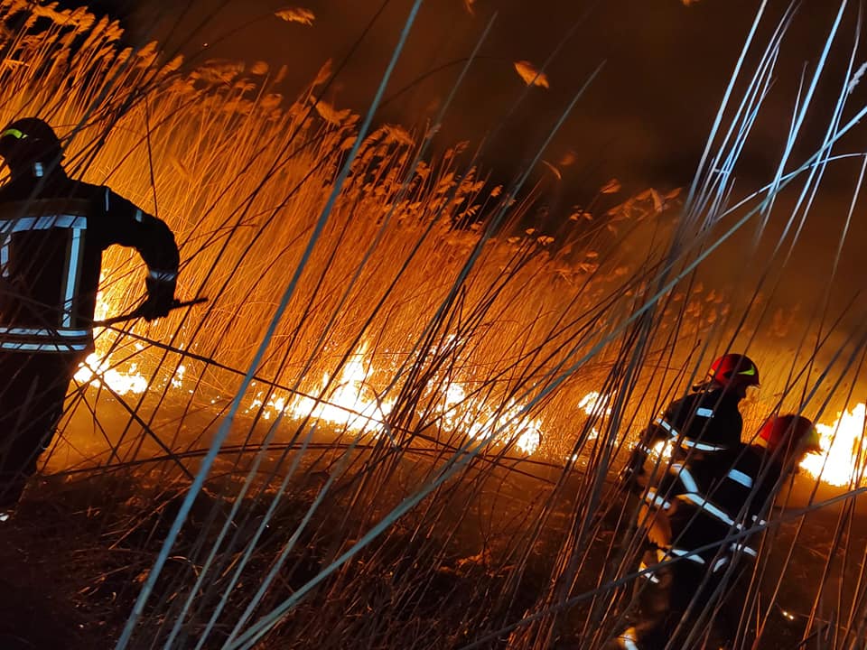 Pompierii au intervenit, vineri seară, pentru singerea unui incendiu de vegetaţie uscată între localităţile Sarinasuf şi Plopu din comuna Murighiol.