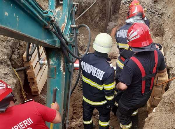 Bărbat se afla la peste trei metri adâncime în momentul în care malul de pământ s-a desprins. Pompierii au reuşit să îndepărteze pământul, dar ”bărbatul nu prezintă funcţii vitale”.