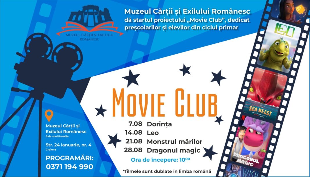 Muzeul Cărții și Exilului Românesc dă startul proiectului „Movie Club”, dedicat preșcolarilor și elevilor din ciclul primar.