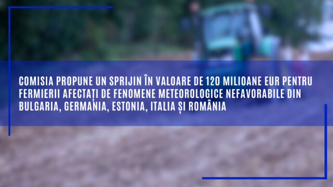 Comisia a propus, azi, alocarea a 119.7 de milioane de euro din rezerva pentru agricultură pentru a sprijini în mod direct fermierii din Bulgaria, Germania, Estonia, Italia și România care au fost afectați de fenomene climatice nefavorabile excepționale în primăvară și la începutul verii.