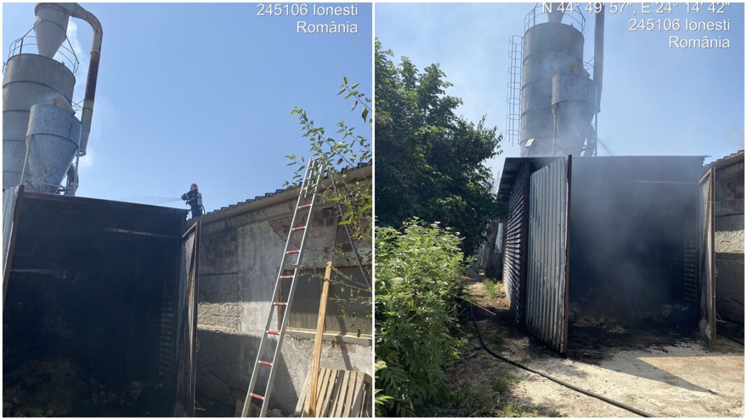 Pompierii militarii intervin în aceste momente pentru stingerea unui incendiu izbucnit la un operator economic, în localitatea Ionești, sat Fișcălia. Incendiul se manifestă la o hală în care este depozitat rumeguș.
