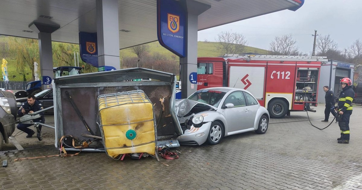 „În urma accidentului rutier s-a răsturnat o cantitate de aproximativ 1000 l de motorină dintr-un bazin aflat in remorca unuia dintre autoturismele implicate în accident, pe suprafaţa amplasamentului din staţia de carburant”, au precizat pompierii.