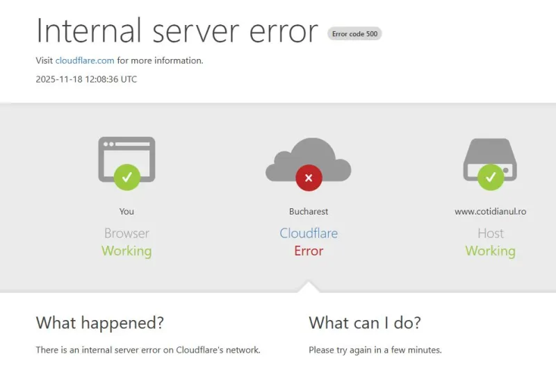 Au fost afectate inclusiv site-uri de presă din România de problemele tehnice ale Cloudflare, compania americană folosită de aproape 20% din internet pentru diferite servicii web.