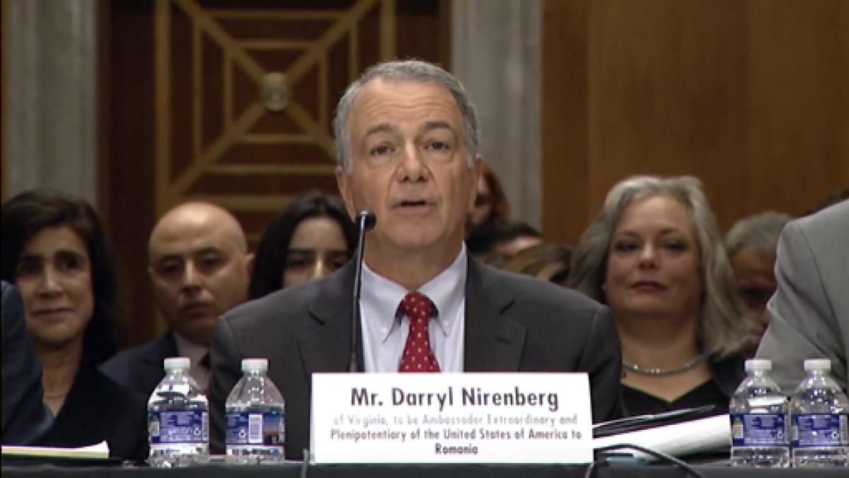 „Această nominalizare este onoarea vieții mele, pentru care sunt recunoscător președintelui Trump și secretarului (de stat, Marco) Rubio. Aștept cu nerăbdare, dacă voi fi confirmat, să colaborez îndeaproape cu această comisie pentru a consolida relația noastră cu România și pentru a promova interesele naționale ale Americii în străinătate“, a pledat Darryl Nirenberg.