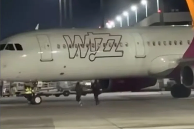 Doi români aflați, sâmbătă, pe Aeroportul din Koln, Germania, au spart geamul unei ieșiri de urgență pentru a ajunge pe pistă, apoi au alergat pentru a prinde avionul Wizz Air spre București, potrivit Bild