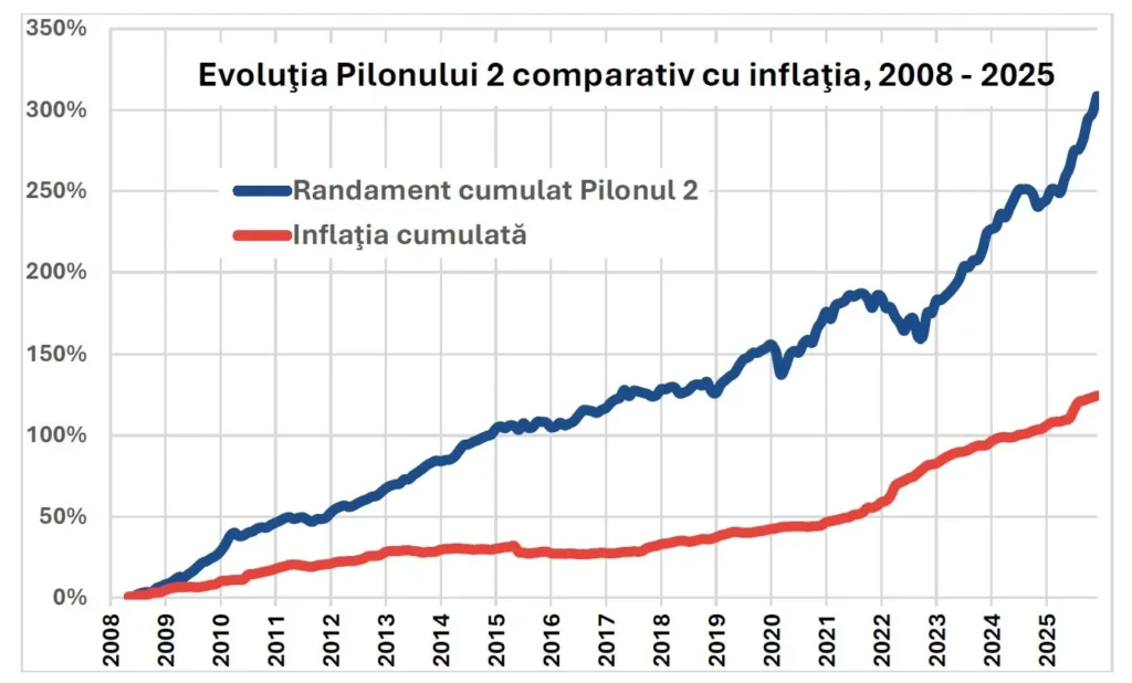 Așadar, pot fi ani foarte buni, ca 2025, pot fi ani cu scăderi, dar iată că până acum Pilonul II este mult peste inflație.