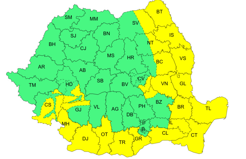 Meteorologii au emis coduri galbene de vânt și ninsori viscolite pentru mai multe județe.Răcirea vremii va începe de la noapte și se va extinde treptat în teritoriu. Precipitațiile se vor transforma din ploaie în ninsoare.