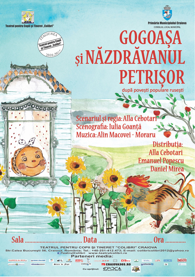 Weekendul continuă cu spectacolul „Gogoașa și Năzdrăvanul Petrișor”, o adaptare plină de farmec după povești populare rusești.
