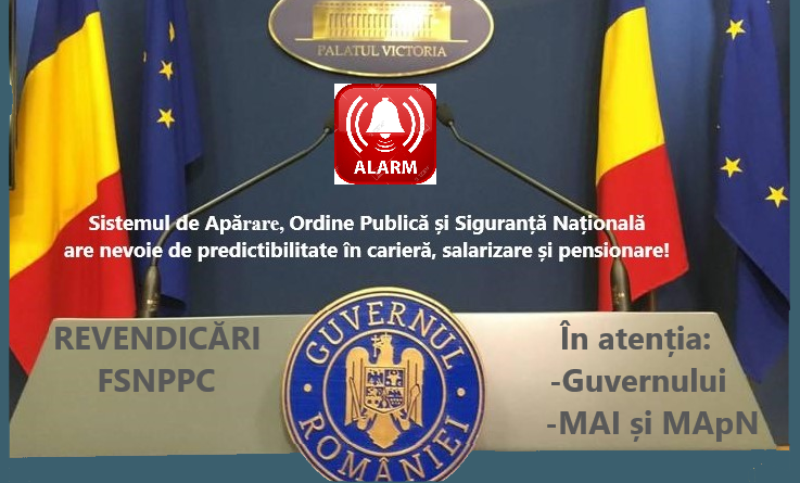 Conducerea Federația Sindicatelor Naționale ale Polițiștilor și Personalului Contractual (FSNPPC) a transmis o scrisoare oficială către Guvernul României și către ministerele responsabile de apărare și ordine publică, solicitând o întâlnire urgentă privind situația personalului din sistemul de securitate națională.