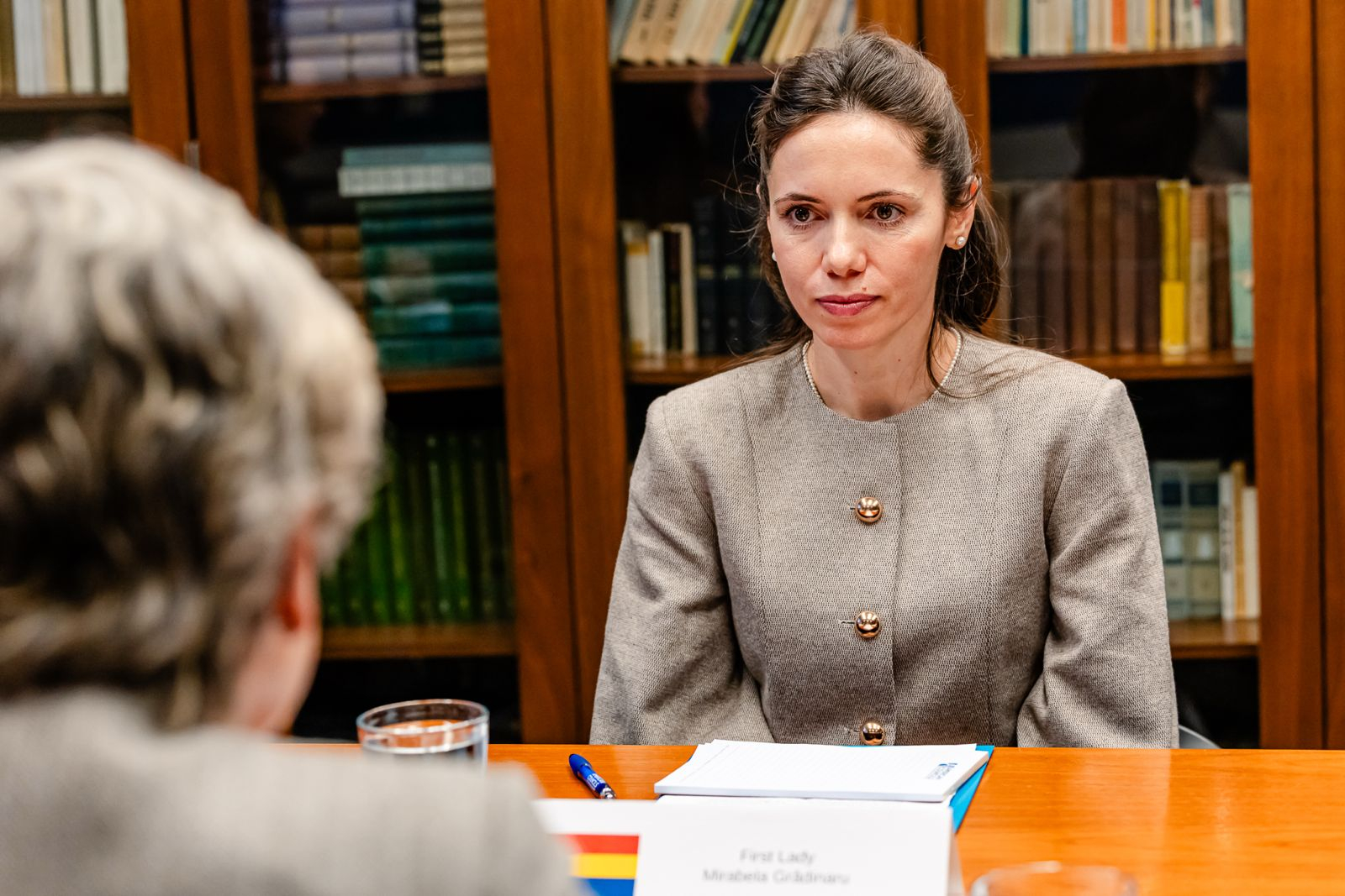 Pe pagina de socializare a Administraţiei Prezidenţiale au fost postate fotografii în care Mirabela Grădinaru apare alături de Brigitte Macron, soția președintelui Franței, Emmanuel Macron, și Olena Zelenska, soţia preşedintelui Ucrainei, Volodimir Zelenski.