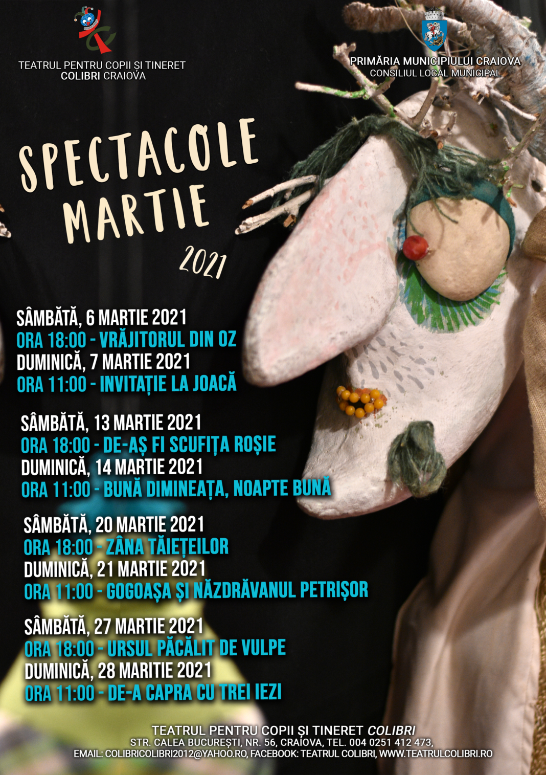 Mai multe informații se pot obține la tel.: 0251.412.473, pe www.teatrulcolibri.ro, www.facebook.com/TeatrulColibri.