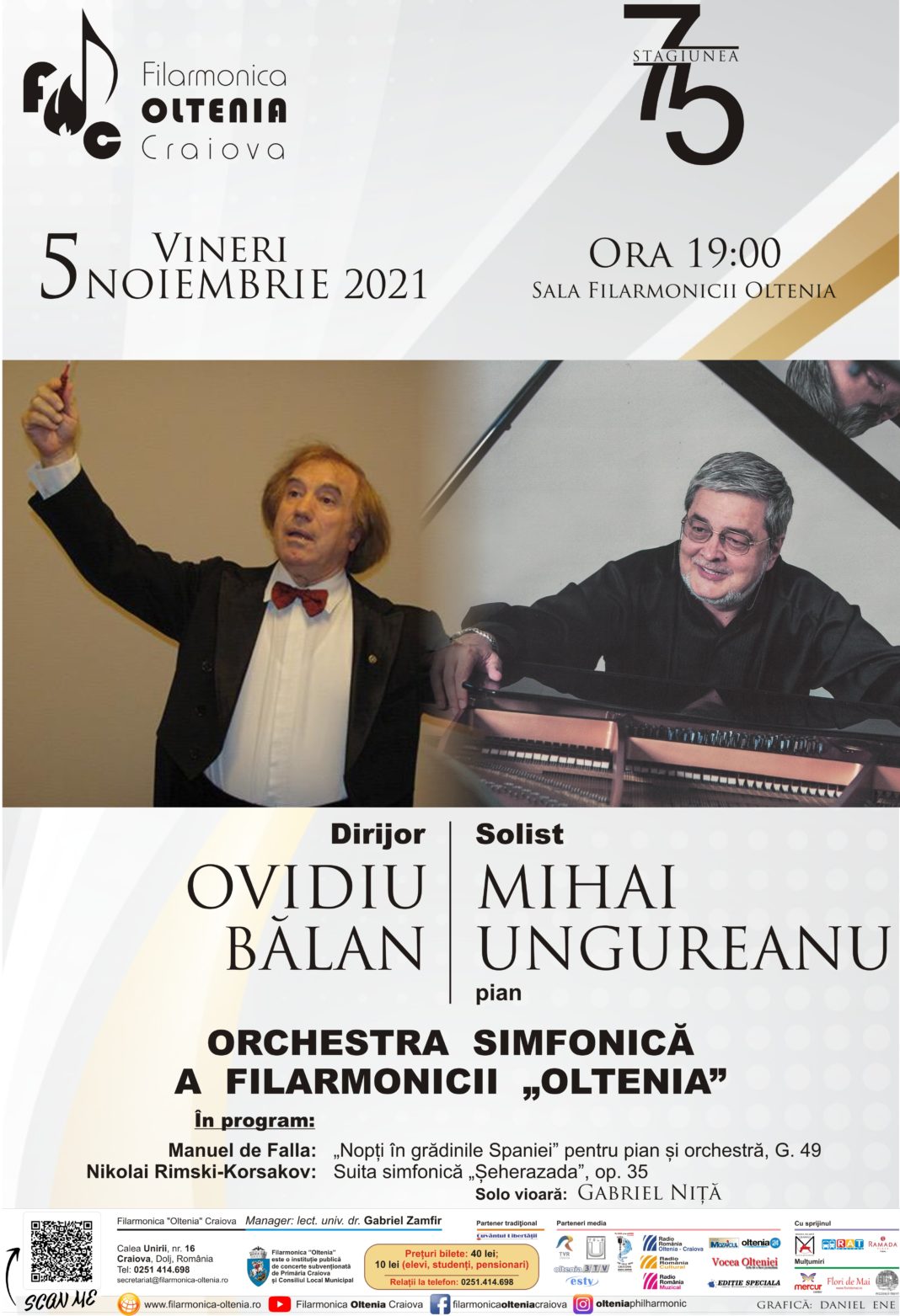 Conducerea muzicală va aparține dirijorului Ovidiu Bălan, iar partitura solistică va reveni pianistului Mihai Ungureanu.