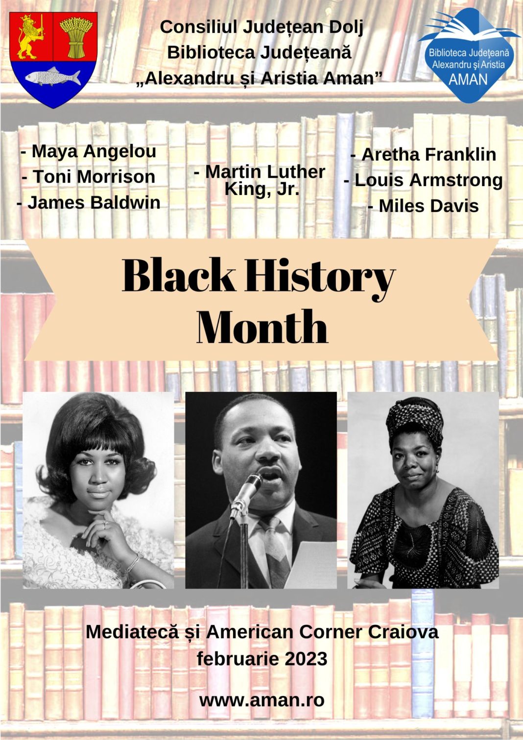 Biblioteca Județeană „Alexandru și Aristia Aman”, prin compartimentul Mediatecă și American Corner, propune în perioada 1-28 februarie, expoziția de cărți și materiale multimedia intitulată „Black History Month”.