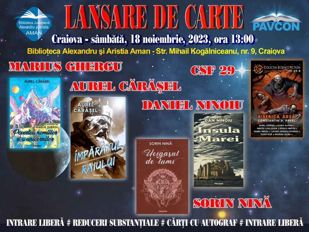 - un nou număr din Colecția de povestiri science fiction a editurii. Autorii vor fi prezenți, vor da autografe iar intrarea va fi liberă.