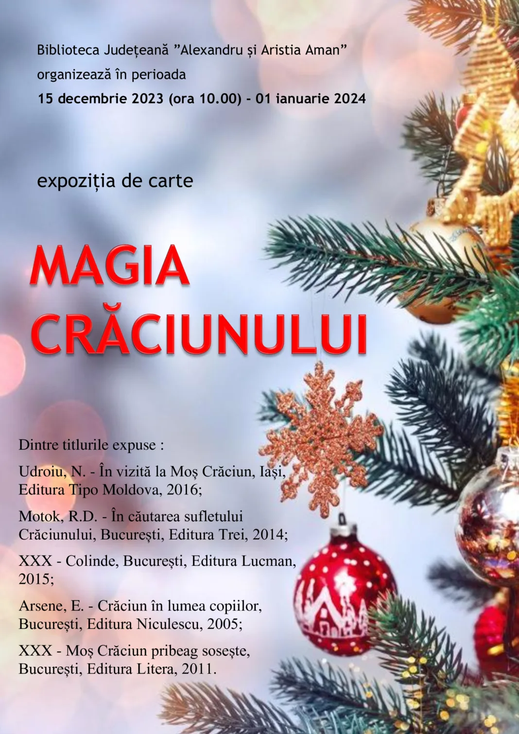 Biblioteca Județeană „Alexandru și Aristia Aman”, prin Secția Depozit General și săli de lectură, organizează expoziția intitulată „Magia Crăciunului”.